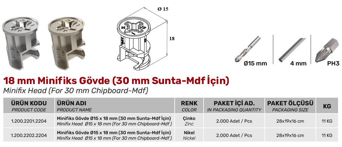 Devamını okuMORE INFO18 mm Minifiks Gövde (30 mm Sunta-Mdf İçin)